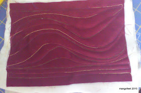 I grabbed some burgundy deco fabric I had on hand, did a little quilting,