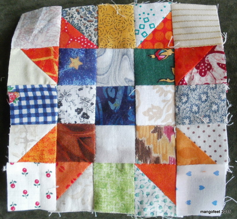 Looks like you're off to a good start, even if your supply of orange scraps seems low. Sounds like a good excuse for fabric acquisition!